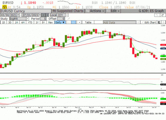 Gün içerisinde 1.1840 seviyelerini test etmesine rağmen bu seviyelerde tutunamayarak ciddi bir tepki satışıyla karşılaşan parite günü 1.1790 seviyelerinden 0.28% düşüş ile tamamladı.