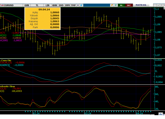 EURUS; Yeni haftaya zayıflayan dolara paralel güçlenerek başlayan paritede özellikle yakın dirençlerin test edilmesi ile daha iştahlı bir görünüm ortaya çıktı. Piaysa kritik TÜFE verisi öncesi bu etki ile toparlanırken teknik görünümde ki aşırı satıcılı görünümünü de bir nevi kırmış oldu. Piyasanın bugün de yakın dirençlerini test ederek günü tamamlamasını ve yarın ki veri ile yön tayin etmesini bekliyoruz. Verinin enflasyonun düşüşünü işaret ettiği durumda paritenin tekrar 1.10 seviyesine doğru yükselişini genişletmesi beklenirken aksi yönlü gelişmelerde ise 1.070 kademeleri bir kez daha test edilecektir.