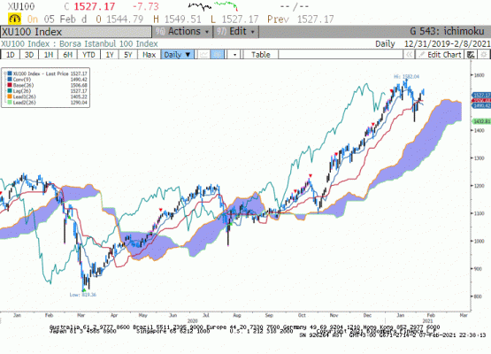 Gün içinde endekste yükseliş genele yayılamamış olmakla birlikte Cumhurbaşkanı Erdoğan'ın millate sesleniş konuşmasında sürpriz vereceği açıklamaları hisseler bazında alımları ön plana çıkarttı. Diğer dikkat çeken nokta ise bankalara yabancı alışının artmasıydı. Buna rağmen gün içinde 1550 seviyesindeki direncin çalıştığını ve bu seviyeye yaklaşıldıkça endeksin satış baskısı altında kaldığını gözlemledik.