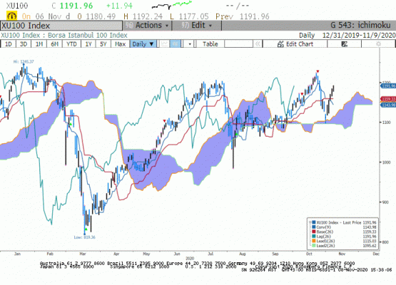 BIST 100 endeksi, Türkiye Cumhuriyet Merkez Bankası (TCMB) Başkanı Naci Ağbal'ın fiyat istikrarı ve iletişim konusundaki net ve sade açıklamaları sonrasında döviz kurlarında görülen sert düşüş ve yeni tip koronavirüs (Kovid-19) aşı çalışmalarındaki olumlu haberlerin pozitif etkisiyle, bankacılık hisselerinin öncülüğünde günü 1.231,54 puandan tamamlayarak 9,5 ayın en yüksek kapanışını gerçekleştirdi.