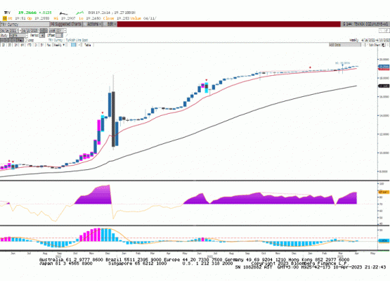 Teknik olarak, Mart ayı 2. Haftasında 1.0650 civarında olan 60 haftalık üssel hareketli ortalama üzerinde kapanış yapan ve son dört haftadır yükselen Euro/dolar paritesi güçlü dolar etkisi ile 1.0750 desteğine doğru geri çekilebilir.