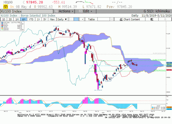 BIST100 endeksi dar bir aralıkta işlem gördükten sonra seans sonuna doğru gelen satışlar ile günü 97.845 seviyesinde kapadı. Dışarıda Amerika'da tarihinin en kötü istihdam raporuna rağmen piyasaların risk iştahı bozulmadı. Piyasalar mevcut kötü ekonomik veriler yerine ileriye dönük olumlu beklentileri fiyatlamayı tercih ediyor. Buna rağmen içeride BIST100 endeksinin bir önceki gün olduğu gibi bu iyimserliğe katılamadığını görüyoruz. TL ve TL cinsi varlıklar ne alış ne satış yönde kuvvetli bir eğilim göstermedi. Türkiye piyasaları TCMB, BDDK ve Hazine ve Maliye Bakanlığı'nın yapacağı açıklamalara kilitlenmiş vaziyette diyebiliriz.