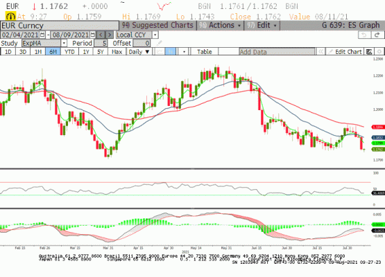 Geçtiğimiz 9 Ağustos işlem gününü yatay negatif bir seyir ile geçiren EURUSD paritesi günü 0.15% düşüş ile 1.1717 seviyesinden tamamladı.