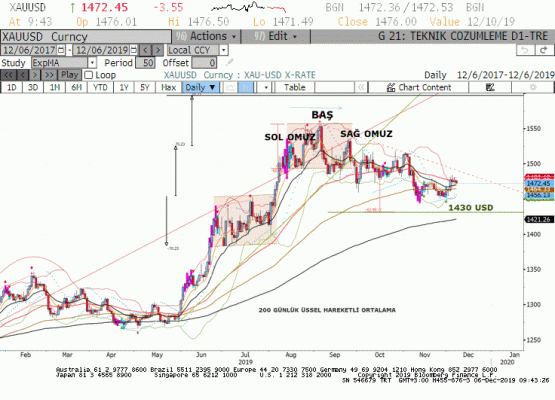 Son dönemde olumlu gelen ABD verileri(ISM imalat PMI hariç) ve Çin ile birinci faz ticaret anlaşması FED tarafında bekle-gör moduna uygun mesajlar verilmesini sağlayacaktır. yarın özellikle verilecek mesajlar çerçevesinde ABD tahvil faizlerinin hareketi piyasada etkili olacaktır. Altın piyasasında aşağı yönlü hareket olasılığının bir adım önde olduğunu düşünüyoruz.