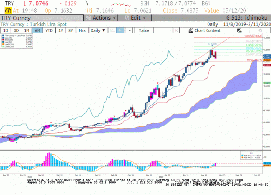Haziran vadeli Dolar/TL paritesi 7.0000 desteğine doğru geri çekilmekte istekli görünüyor. Dışarıda Dolar (DXY) endeksi 100.200 seviyesinde gücünü koruyor. Türkiye 5 yıllık CDS primi Cuma günkü seviyelerinden geri çekilerek günü 627.600 seviyesinde kapadı. Gelişen ülke para birimlerinin son beş günde Amerikan Doları karşısındaki performansına bakıldığında Türkiye yüzde 0.41 değer kaybı ile 24 gelişen ülke para birimi arasında 16. sırada yer alıyor. Brezilya Reali 4.33 değer kaybı ile listenin sonunda yer alıyor. En iyi performans gösteren gelişen ülke para birimi ise Kolombiya Pezosu ve Rus Rublesi olarak karşımıza çıkıyor.