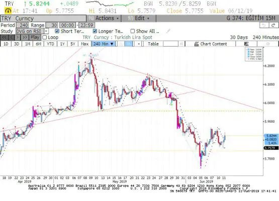 Kur dün 100 günlük üssel ortalaması 5,74 üzerinde tutunarak çift dip formasyonu göstermeye devam etti. Ancak kurun bu seviye altında negatif kapanış yapmasını bekliyoruz. 50 günlük üssel ortalama 5,84 üzerinde pozitif kapanış oluşmadığı sürece TL long pozisyonların korunacağını düşünüyoruz.