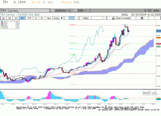 Teknik olarak, ichimoku grafikte sinyal çizgisi 6.6780 altında ilk destek 6.5800 olarak görülüyor. Pozitif havanın devamı ile 6.4400 desteğine doğru geri çekilme devam edebilir. 6.4400 önemli bir destek ve aşağı yönde kırılması düşüşün orta vadeye yayılması anlamına gelebilir. Yukarıda 06 Nisan yükseği 6.8027 üzerinde yeni yüksek seviyeler görülebilir.