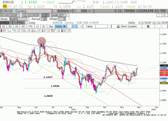 1.11 üzerindeki seyir ve momentum ile birlikte dün de belirttiğimiz 200 günlük üssel ortalama direncine kadar yükseliş görülebileceği beklentimizi koruyoruz. 1.1168-1.1180 direnç bölgesi bu anlamda önemli.