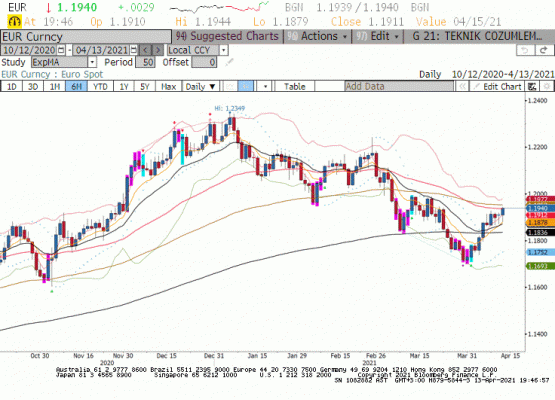 Dün açıklanan ABD Mart ayı enflasyon verisi sonrasında Dolar Endeksinde 92.00 altında hareket euro/dolar paritesinde geçtiğimiz hafta başlayan yükselişi 1.1940’a taşıdı. Paritede piyasaların ABD enflasyonu geliyor endişesine iyimser yaklaşan döviz piyasası Euro’ya fırsat tanımış iken bu hafta 1.2000 direnci test edilebilir. Son derinlik raporunda son 52 haftanın düşük seviyesinde Euro net uzun pozisyonu ile yukarı yönlü tepkiler makul görünürken bundan sonrası Avrupa aşılama süreci ve ekonomik verilerine bağlı görülüyor. Bugün Euro Bölgesi Mart atı tüketici enflasyonu son okuma ile Şubat ayı sanayi üretimi rakamlarını öğrenmiş olacağız.