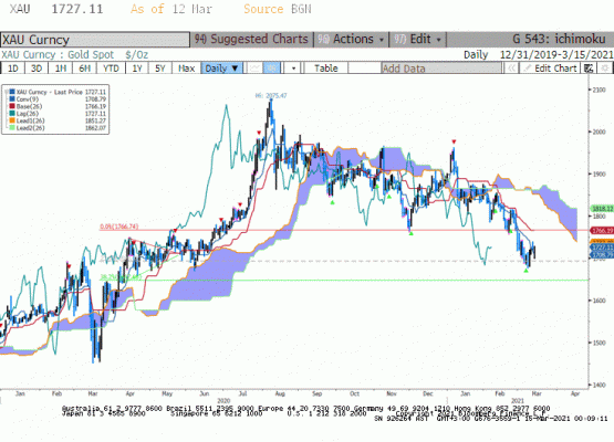 Teknik olarak, 1727$ dolar/ons seviyelerinden işlem gören altında 1720$ seviyesinin üstünde kalındıkça alımların kademeli olarak 1750$ seviyesine doğru devam edebileceğini düşünmekteyiz. Bugün onsta 1720$ seviyesinde gelecek tepkiler belirleyici olacaktır. Yükselişte ise 1750$ seviyesi ilk direnç seviyesi olmaya devam ediyor.