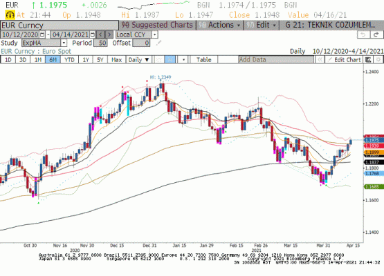 FED Başkanı Powell’ın hafta başında ABD ekonomisi yapabileceğinin iyi noktasında söylemi ardından dün ılımlı ekonomik büyüme söylemi piyasaları dengeledi. Dolar Endeksi beklentimiz dahilinde olan 91.50-91.70 aralığına gerilerken 91.50 altındaki fiyatlama pariteyi 1.2000 üzerine taşıyabilir. Bugün Fransa ve Almanya tüketici enflasyonu verisi son okuma olarak açıklanacak. ABD tarafına gelince perakende satışlar verisi ve Philly Fed imalat sanayi endeksi ile şekillenecek bir veri trafiği var. Avrupa Bölgesinde aşılama nasıl gidiyor yaz aylarında ekonomik aktivite canlanacak mı sorularını ararken paritenin 1.2000 üzerinde kalıcılık sağlaması zor görülüyor.