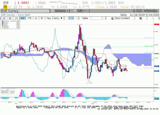Son dönemde ne olsa Euro'ya yaramıyor. Bugün Almanya ilk çeyrek büyüme rakamı ilk okumada açıklanacak. Alma ekonomisinin yılın ilk çeyreğinde yüzde 3 daralacağı tahmin ediliyor. Öte yanda dün yapılan güncelleme ile Alman ekonomisinin vergi gelirleri 106 mia dolar olarak aşağı yönlü revize edildi. Birliğin lokomotif ekonomisine ilişkin veriler genele ışık tutar cinsten ve döviz piyasası mevcut koşullarda Euro pozitif fiyatlama için bir neden bulamıyor.
