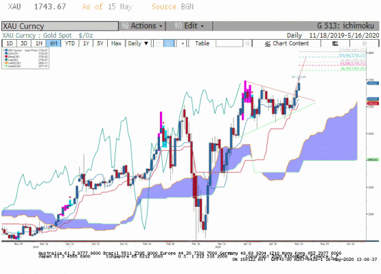 Geçtiğimiz hafta 14 Mayıs seansında teknik yukarı yönlü kırılma ile ons altın haftayı 1.751,69 seviyesinde kapadı. İşin özü altın yatırımcısı geri döndü ve yatırımına sahip çıkıyor. Dolar Endeksi gücünü koruyor ve önümüzdeki dönemde bu tarafta çok sert bir geri çekilme için sebep bulunmuyor. Altın bu taraftan destek almayı umut etmiyordu ama negatif faiz ortamını umut ediyor. FED Powell konuşması ile şimdilik bu bekleyiş rafa kaldırıldı. Ancak ekonomik iyileşmenin beklenenden çok yavaş olacağı yeni teşvik paketlerinin gerekliliği ve küresel anlamda uzunca bir süre düşük faiz ortamında olunacağı nerede ise kesinleşince altın yatırımcısı daha fazla beklemek istemedi. Bu hafta ABD tahvil bono piyasasında gösterge 10 yıllık tahvil faiz oranlarında dişe gelir bir yükseliş olmadığı müddetçe ons altının kademeli olarak 1.792-1802 aralığına doğru yükselişini sürdürmesini yüksek ihtimal olarak görüyoruz.