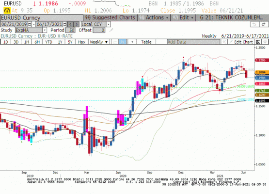 FED toplantısı ve tapering beklentilerinin oldukça artmasıyla birlikte , aracı kurumların varlık alımlarındaki azaltımlarını daha erken vadeye revize etmeleriyle birlikte sert satışlar yaşanan EUR/USD paritesi önceki günü 0.74% düşüş yaşayarak Perşembe gününü 1.1905 seviyelerinden kapattı. Bununla birlikte kritik bir seviye ve destek konumunda olan 200 günlük üssel hareketli ortalamanın altında bir noktadan kapatmış oldu ve Euro için kısa vadede bir ayı piyasası içerisine girmiş bulunuyoruz.