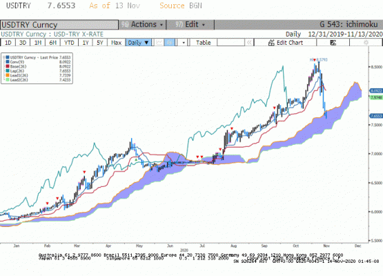 USD/TRY paritesi geçtiğimiz gün, gün içinde 7,6631 ile 7,7981 bandında hareket ettikten sonra akşam saatlerinde 7,6964 seviyesinden dengelendi. Son 1,5 haftadır TL varlıkların değer kazanması sonrası bu hafta hafta başlangıcı itibari ile kar realizasyonunun ön plana çıktığını gördük. dolar endeksindeki yatay seyre rağmen paritede gün içinde yükseliş ön plana çıktı. Perşembe günü gerçekleşecek PPK toplantısına kadar piyasada volatilitenin yüksek olacağını düşünüyoruz.