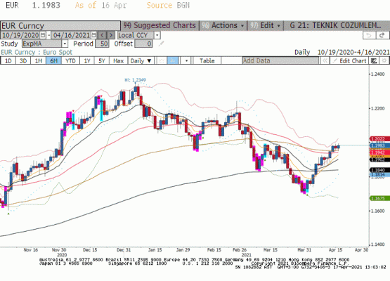 Geçtiğimiz hafta ABD ekonomisi istihdam perakende satışlar vb. ekonomik verilerde iyileşme gösterirken Avrupa Bölgesi geriden geliyor. Haftanın son işlem gününde ABD ve Avrupa’da Nisan ayı PMI imalat ve servis sektör endeksleri ilk okuma açıklanacak. Nisan ayında Avrupa ekonomisi canlanma eğilimi gösteriyor mu göreceğiz. Aşılama sürecinde ilerleme ile yaz aylarında bölge ekonomisinin canlanacağı beklenirken ABD ekonomisi için alt alan Üsküdar’ı geçti. Ancak geçtiğimiz hafta Powell’ın söyleminde yer alan bazı ekonomistler bütçe açığının ekonomik aktivitenin önünde gittiğini düşünüyor söylemi yanında bu durumun sürdürülebilirliği konusundaki yorumu Dolar Endeksi’ni baskıladı. Kısa vadede ABD ekonomisinin güvenilirlik veya piyasada borçlanma konusunda bir sorunu yok ancak FED ’in ekonomiye destek amaçlı attığı adımlar ve teşvik paketleri ile genişleyen federal bütçe ekonomik toparlanma ile ne kadar finanse edilebilir. Bu yaklaşım kısa vadede Dolar Endeksi’nin 90.30 seviyesine taşırken Euro/dolar paritesi bu hafta 1.2000 üzerinde 1.2110 seviyesini hedefleyebilir.