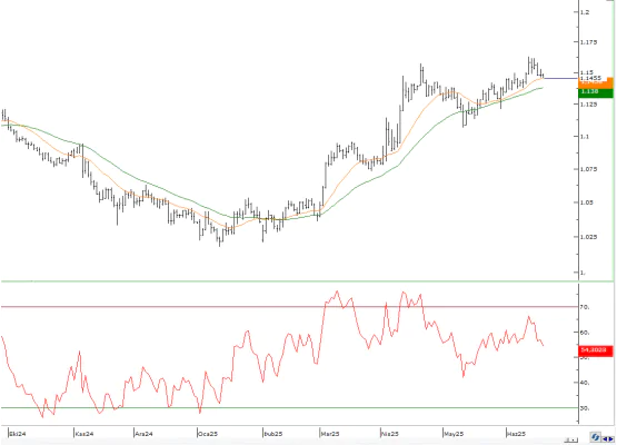 Fed sonrası güçlenen dolar endeksiyle birlikte EURUSD paritesi sabah saatlerinde 1,1450 seviyesine kadar geriledi. Ancak teknik göstergeler, bu bölgeden yukarı yönlü bir tepkinin gelebileceğine işaret ediyor. Dolar endeksinde 99 seviyesi üzerinde kalıcılık beklenmezken, paritenin kısa vadede 1,14–1,17 aralığında dalgalanması olası.