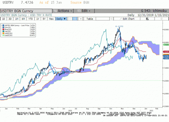USD/TRY paritesi geçtiğimiz gün, gün içinde 7,4185 ile 7,4875 bandında hareket ettikten sonra akşam saatlerinde 7,4635 seviyesinde dengelendi. Gün içinde Dolar endeksinde geri çekilme ön plandayken, diğer bütün gelişmekte olan para birimleri gibi TL'nin de güçlü seyrini gördük. akşam saatlerinde ABD'nin yeni Hazine Bakanı Janet Yellen'ın, 'ABD zayıf dolar hedeflememeli' açıklamaları ve bir sonraki paketin daha büyük olması gerektiğini vurgulaması DXY'de düşüşü desteklerken paritede kısmi geri çekilme etkili oldu. Bugün yeni ABD Başkanı Biden, Trump'tan görevi teslim alacak. ABD tarafında yaşanacak gelişmeler ve haber akışı paritedeki fiyatlamalar için yakından takip edilecek.