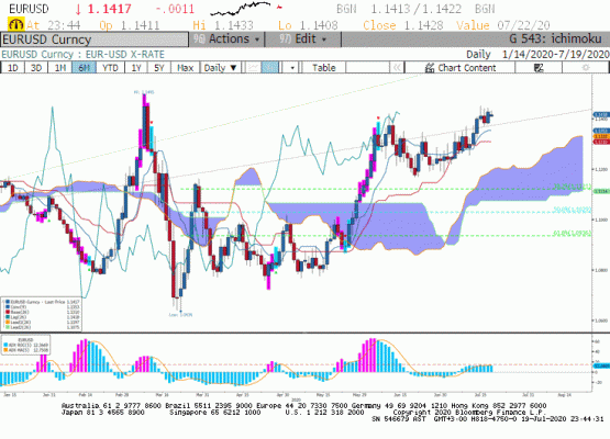 EUR/USD paritesinde geçtiğimiz hafta uzun zamandır kırılamayan 1,14 seviyesinin kırıldığını ve paritenin haftayı 1,1418 seviyesinde kapattığını gördük. Geçtiğimiz hafta Avrupa Merkez Bankası Temmuz toplantısında faizlerde değişikliğe gitmedi, pandemi tahvil alım programını ise 1.35 trilyon Euro seviyesinde tuttu