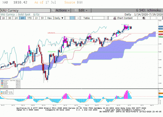 Altın fiyatları, haftanın son işlem gününü corona vakalarının ABD'de her geçen gün rekor tazelemesi ve bazı eyaletlerde bulunan işletmelerin yeniden kapatılma endişesi ile 1800$ 'ın üstünde kapattı.