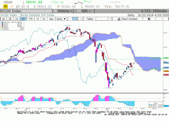 Dışarıda Dolar (DXY) endeksi 100 etrafında yatay hareketini sürdürüyor. İöeride Nisan vadeli Dolar/TL paritesinde günün düşük seviyesi 6.8800 iken kapanış bir önceki günkü seviyeye yakın gerçekleşti. Türkiye 5 yıllık CDS primi 620 altına geriledi. Dışarıda gelişen ülke para birimleri Amerikan Doları karşısında zayıf seyrini sürdürüyor. Gelişen ülke ETF'lerinden sene başından bu yana 10.3 milyar dolar çıkış gerçekleşmiş. Virüs salgının borçluluğu yüksek gelişen ülkeleri olumsuz etkileyeceği beklentisi avardı. Bu nedenle tünelin ucunda bir ışık var ama tam emin olmadan gelişen ülke riski almayalım diyen yatırımcı çoğunluğu oluşturuyor. Hafta içinde TCMB'in dışarıdan gelişmiş ülke Merkez Bankaları ile swap yapma alternatifi gerçeğe dönüşürse Dolar/TL paritesi 6.7900 ardından 6.7500'e doğru gerileyebilir. Yukarıda 16 Nisan yükseği 6.9613 üzerinde 7.0600 hareketi mümkün görülüyor.