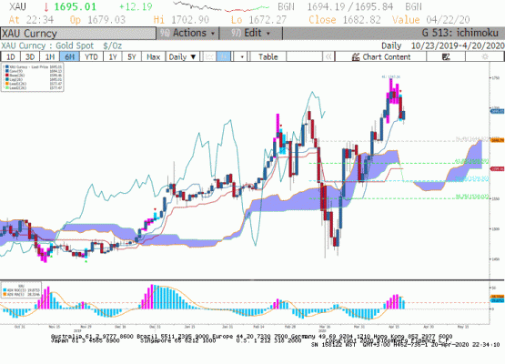 Spot altın dün en düşük 1.672 dolar seviyesini gördü. Sonrasında yaşanan toparlanma ile 1.702 dolar görüldü ancak ons altın 1.700 dolar üzerinde kapanış yapamadı. İchimoku grafikte sinyal çizgisi 1.694 altında kapanışlar ile geri çekilmenin 1.645 dolara doğru sürme ihtimali var. Bugün 1.700 dolar üzerinde kapanış olursa yukarıda 1.720 dolar direnci denenebilir.