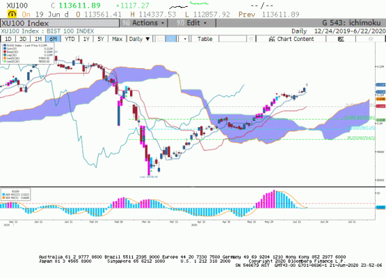 Piyasalardaki en kötünün geride kaldığını fiyatlama eğiliminin devam etmesine karşın salgında ikinci dalga endişeleri ve ekonomiye ilişkin belirsizliklerin risk unsuru olmaya devam ediyor. Bugün gün içerisinde 115.200 seviyesinin test edildiğini görebiliriz.