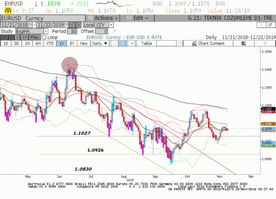 50 günlük ortalama 1.1067 üzerinde devam eden fiyatlamalarda 1.11 direnci kırılabilir. Bu durumda ekim ayında çift tepe oluşumun gözlendiği 1.1180 seviyesi hedeflenebilir. 50 günlük ortalama altına sarkma durumunda ise 1.1027 seviyesinin pariteyi hafta kapanışı öncesinde tutmasını bekleriz.