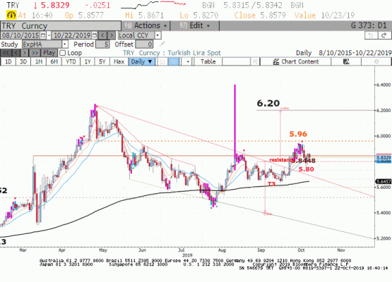 Cumhurbaşkanı Erdoğan, Soçi'de Rusya lideri Putin'le yaptığı görüşme sonrasında 10 maddelik bir anlaşma metninde mutabık kaldı. YPG, 150 saat içinde 30 km geriye çekilecek; 10 km derinlikte Türk-Rus devriyesi başlayacak. Piyasanın habere reaksiyonu olumlu oldu ve kur 5.7880 seviyesini test etti.