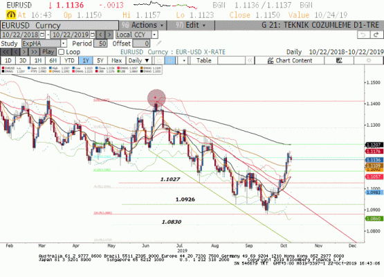 Parite 1.0880 seviyesinden 1.1170 seviyesine kadar yükseldi ve kısa dönem momentum göstergelerinin aşırı alım bölgesinden çıkış hareketi göstermesi ile teknik olarak bir düzeltme görülüyor. Haber akışına da bağlı olarak düzeltme hareketi devam edebilir.