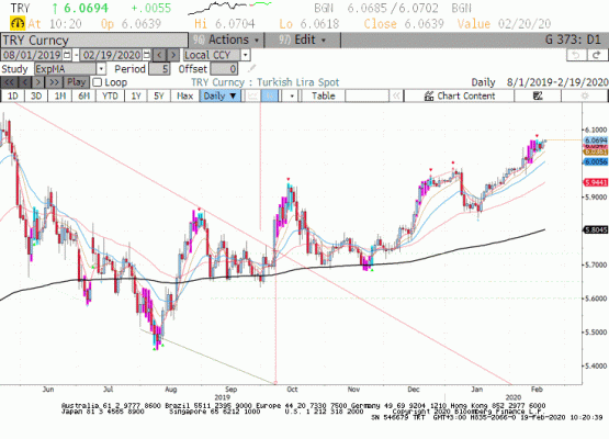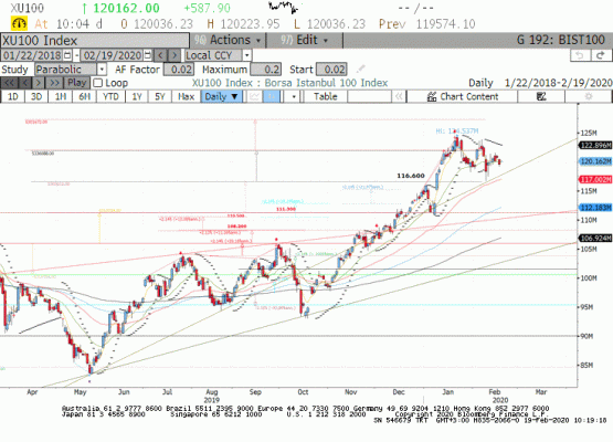 Virüs kaynaklı endişelerin riskli EM para birimlerine satış getirmesi, DXY'nin yükselen eğilimi ve İdlib'e operasyon beklentisi ile yükselen risk primi TL'de satışların görülmesine neden olmaya devam ediyor. Ana trendin yuakrı yönlü gelişmeye devam etmesini ve geri çekilmelerde alımların artmasını bekliyoruz.