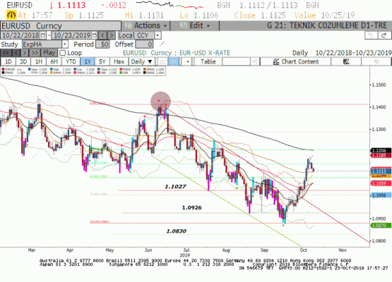Bugün ECB faiz kararı sonrasında Draghi'nin açıklamaları ve ABD'den PMI ve dayanıklı mal siparişleri verileri volatilitenin yükselmesine yol açacaktır. Son dönemde tciaret savaşlarına ara verilmesi sonrasında Euro Bölgesi ekonomisinin gelişimine ilişkin Draghi'nin açıklamaları paritenin mevcut trendini belirleyebilir. ECB'nin 12 eylüldeki toplantısından bu yana Euro Bölgesi ekonomik göstergelerinde bir düzelme oluşmadı. Bu çerçevede Draghi'den parasal teşviklerin devamının gerektiğine ilişkin açıklamalar izleyebiliriz.