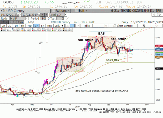 Teknik açıdan eylül ayından başlayan alçalan tepelerin oluşturduğu trend hattının direnç seviyesi 1500 usd kırılmadığı sürece aşağı yönlü hareketlenme potansiyeli devam ediyor. 1473 usd(18 günlük ortalama 2 standart sapma seviyesi) ara destek seviyesi olarak izlenmelidir. 1473 altına bir kırılım daha önce de belirttiğimiz 1459 - 1430 bandına düşüş hareketini başlatacaktır.