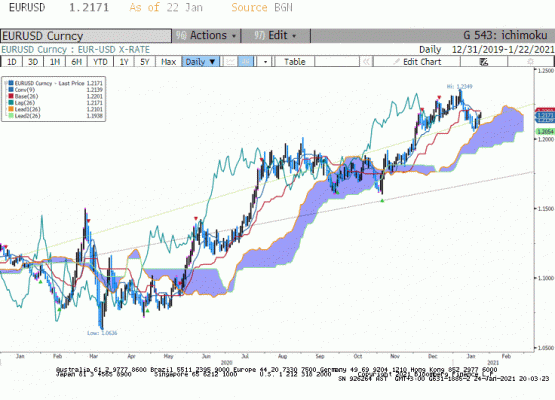 EUR/USD paritesi geçtiğimiz gün, gün içinde 1,2151 ile 1,2191 arasında hareket ettikten sonra akşam saatlerinde 1,2168 seviyesinden dengelendi. Hafta içinde Avrupa Merkez Bankası (AMB) piyasa beklentilerine paralel olarak faizleri sabit tutma kararı aldı. Varlık alım programlarında değişikliğe gitmeyen banka faiz oranlarının enflasyon hedefe yakınsayana kadar ya mevcut ya da da düşük seviyelerde olacağını belirtti. AMB Başkanı Lagarde basın toplantısında 4. çeyrekte Euro Bölgesi'nin daraldığını ve kısıtlamaların ilk çeyrekte büyümeyi baskılayacağını ifade etti. Dolar endeksi ise gün içinde değer kaybederek paritede yükselişte etkili oldu.