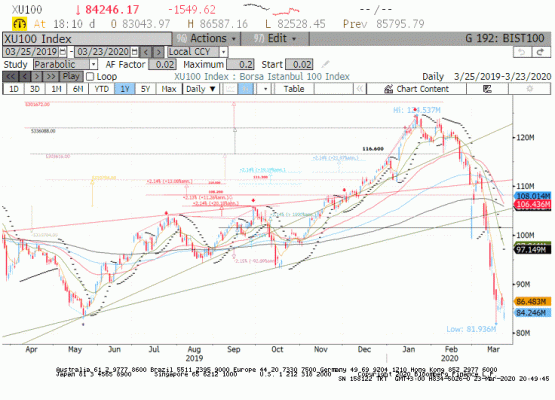 Dün küresel piyasalar Amerika ve Avrupa Bölgesinden gelen Euro Bölgesi Mart PMI imalat endeksi 44.8, Almanya 45.7 iken servis sektör PMI endekslerinde geri çekilmenin daha fazla olduğu görülüyor. Almanya'da bugün açıklanacak IFO iş dünyası güven endeksinde tahmin oluşmamış. Muhtemelen Mart ayında 87.7 endeks seviyesinden sert bir geri çekilmeye şahit olacağız. Amerika PMI Mart ayı imalat sanayi endeksi 49.2 ile 2009'dan bu yana en düşük seviyede gerçekleşti. Bugün açıklanacak Şubat ayı dayanıklı tüketim malları siparişlerinin aylık bazda yüzde 1 daralması bekleniyor.