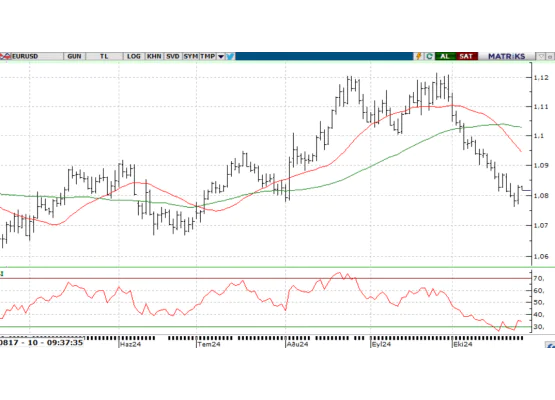 EURUSD; Hafta ortasında 1,0761 seviyesine kadar düşerek son üç ayın en düşük seviyesine gerileyen parite, geçtiğimiz gün Euro lehine toparlanarak 1,0828 seviyesine yükseldi. Haftanın son işlem gününe yaklaşırken bu seviyenin hemen altında işlem görmeye devam ediyor. Yukarı yönlü hareketlerin sürmesi durumunda, 1,0828 seviyesinin aşılması halinde düşüş trend çizgisi ve ardından 1,0885 seviyesi direnç olarak izlenebilir.