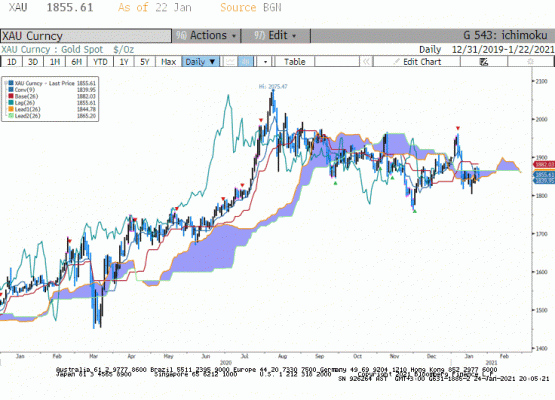 Teknik olarak, 1855,17 dolar/ons seviyelerinden işlem gören altında 1850$ seviyesinin üstünde kalındıkça alımların kademeli olarak 1870$ seviyesine doğru devam edebileceğini düşünmekteyiz. Bugün onsta 1850$ seviyesinde gelecek tepkiler belirleyici olacaktır. Yükselişte ise 1870$ seviyesi ilk direnç seviyesi olmaya devam ediyor.
