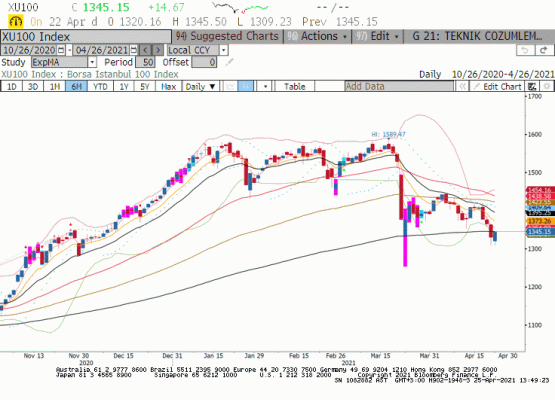 Geçtiğimiz haftaya Nasdaq teknoloji hisse senetlerindeki düşüş ile zayıf başlayan küresel piyasalar haftalık kapanışta kayıpların büyük kısmını geri aldı. Yeni haftada ABD endeksleri ilk çeyrek bilanço gerçekleşmeleri yanında FED ve Powell konuşması ile yön arayacak. Öte yanda öncesinde yaşanan yükseliş ve gelinen yüksek seviyelerde hisse senedi piyasalarının negatif haber akışına duyarlılığı artmış görünüyor. Bu nedenle arada yaşanan geri çekilmelerin küresel risk alma eğilimini aşağı çekeceğini tahmin ediyoruz. İçeride Perşembe ve Cuma günü 1308 ve 1309 seviyelerinde destek bulan BIST100 endeksi haftayı 1345 endeks seviyesinde kapamayı başardı. Ancak hafta sonunda ABD kaynaklı negatif haber akışını düşününce geçtiğimiz hafta düşük seviyeleri altında satıcılı bir başlangıç yapabiliriz. Endekste 23 Mart düşük seviyesi 1256 iken sert geri çekilmede orta ve uzun vadeli düşünen yatırımcının alış yönlü isteği ve endeksin 1300 seviyesi üzerinde kapanış yapıp yapamayacağı kritik önem taşıyor.