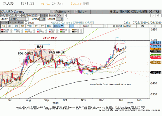 Cuma günü global hisse senedi piyasalarında görülen satışlar Altın talebini artırdı. Özellikle Çin kaynaklı coronavirüs endişelerinin artması Altın açısından yükseliş trendinin daha da güçlenmesini sağlayacak önemli bir katalizör olabilir. Bu nedenle geri çekilmelerin kısıtlı kalmasını ve yukarı yönlü eğilimin devam etmesini bekliyoruz.