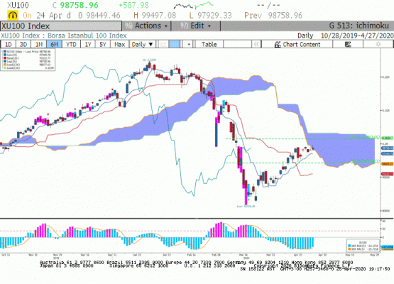 Teknik olarak, BIST100 ichimoku grafikte sinyal çizgisi 97.000 üzerinde kalabildiği sürece ara direnç 99.500 olmak üzere 101.500 direncine doğru yükselişini sürdürebilir.