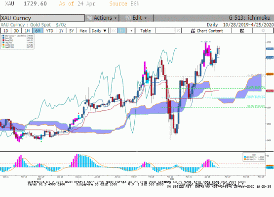 20 Nisan seansında ons altın fiyatları 1.710 dolar desteğine kadar geri çekildi ardından yaşanan yükseliş ile kapanış 1.729 seviyesinde günün yüksek seviyesine yakındı. 1.700 dolar üzerinde kaldığı sürece 1.750 dolar ve üzerini test etme potansiyeli korunuyor. Bu hafta Merkez Bankaları haftası BOJ, FED, ECB olmak üzere toplantı sonrası açıklamaları beklerken altın yükseliş için temkinli olabilir. Öte yanda her durumda mevcut Merkez Bankaları politikaları uzunca bir süre altıan yatırım amaçlı talebi destekleyecek. Bu durumda 1.700 dolar/ons altına geri çekilem durumunda piyasa tarafından alım fırsat olarak görülmesi sürpriz olmaz.