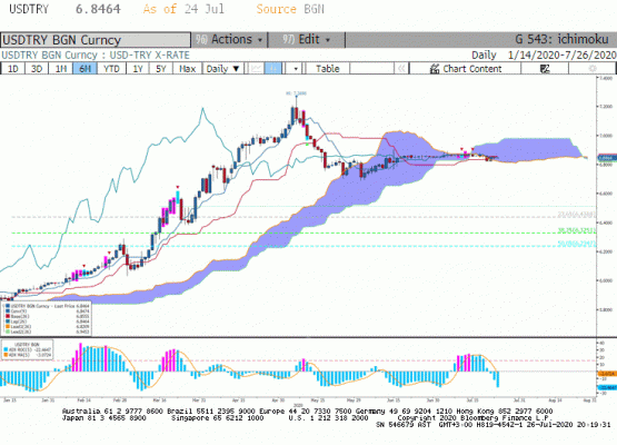 USD/TRY paritesi haftanın ilk işlem gününde 6,8400 ile 6,9600 bandında hareket ederken akşam saatlerinde paritenin 6,8657 seviyesinde dengelendiğini gördük. Bugün gün içinde Dolar gelişmekte olan para birimleri karşısında değer kaybederken, paritede düşüşler sınırlı kaldı. Küresel piyasalarda ise ABD-Çin geriliminin artması piyasalar üzerinde baskı yaratmaya devam ediyor.