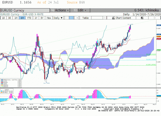Haftanın ilk işlem gününde EUR/USD paritesi gün içinde 1,1650 ile 1,1782 aralığından hareket etmiş olup akşam saatlerinde 1,1749 seviyesinde denge buldu. AB'den yeni teşvik paketi üzerinde anlaşılması ekonomik aktivitede toparlanmanın hız kazanacağı beklentilerini desteklerken, ABD ile Çin arasında yaşanan gelişmeler de Dolar'üzerinde baskı yaratmaya devam ediyor. Bu kapsamda paritede hafta içinde yükselişlerin devamını görebiliriz.