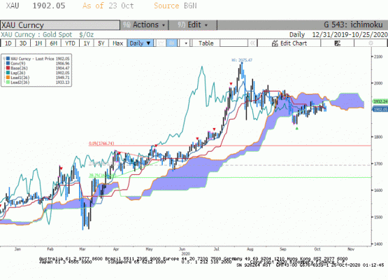Altın fiyatları ABD seçimleri öncesinde dar bir aralığa sıkışmış olsa da, pandeminin etkilerini silmeye çalışacak bir mali teşvik paketi ve daha zayıf bir dolar ihtimaliyle altın için piyasa görünümü pozitif kalmaya devam ediyor.