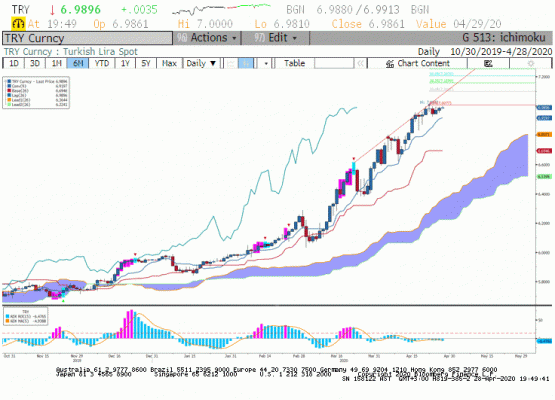Dolar/TL paritesinde günün düşük seviyesi 6.9810 iken kapanış dün de 7.000 sınırına yakındı. Dışarıda Dolar (DXY) endeksi 100 endeks seviyesi altına geriledi. Avrupa'da 3 aylık dolar libor oranında 8 baz puanlık düşüş ile euro 3 aylık libor oranı arasındaki dolar lehine olan spread'in 2016'dan bu yana ilke kez 100 baz puan altına gerilemesi bu limitli geri çekilmenin sebebi olarak görünüyor. Piyasalar Haziran ayından itibaren Avrupa Bölgesinde Euro likidite ihtiyacının azalacağını düşünüyor. Kısaca önümüzdeki aylarda düşen euro libor faiz oranı ve ECB'in Mart ayından bu yana 312 milyar Euro'luk köprü kredileri ile bölgenin finansal sistemi rahatlayabilir. Dün için döviz piyasasında etkili olan bu fiyatlamanın devaöı zaman içerisinde Dolar'ın biraz daha gerilemesi ve diğer gelişen ülke para birimlerinin değer kazanması sonucunu doğrur. Öte yanda gelişen ülke para birimlerinin henüz bu beklentiden faydalanamadığını görüyoruz.
