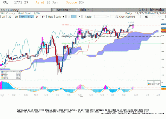 Küresel piyasalarda ikinci dalga beklentilerinin ön plana çıkması altına olan talebi artırırken, uzun zamandır kırılamayan 1750$ seviyesinin kırıldığını ve haftanın son işlem günü akşam saatlerinde işlemlerin 1770$ seviyesini test ettiğini gördük.