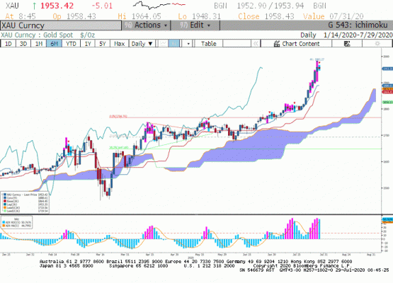 Altın fiyatları, koronavirüs vaka sayısındaki sert yükselişten dolayı artan güvenli liman alımları, yavaşlayan büyüme, zayıflayan dolar ve ABD'de negatif faizler nedeniyle yükselişine devam ediyor. Hükümetler ve merkez bankalarından gelen yüklü miktardaki teşvikler de bu yükselişi destekliyor. Geçtiğimiz gün 1981$ seviyesine kadar yükselen ons akşam saatlerinde gördüğü satış baskısı sonrası 1918$ seviyesine kadar geriledi. Ancak kar realizasyonlarına rağmen küresel koşullar ve artan talep nedeni ile trendin hala yukarı yönlü olduğunu söyleyebiliriz.