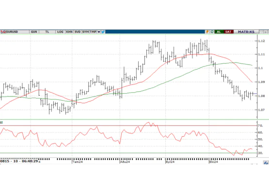 EURUSD; Dün dolar endeksinde sınırlı bir geri çekilme görülürken, EUR/USD paritesi de buna paralel olarak %0,06’lık yataya yakın bir artışla 1,0819 seviyesinden kapanış yaptı. Teknik görünümde kısa vadede 1,0850 direnci ön plana çıkıyor; göstergeler, bu seviyenin aşılamaması halinde paritede satışların yeniden etkili olabileceğine işaret ediyor. Paritede yukarıda 1,0850 direncinin üzerinde 1,0875 ve 1,09 seviyeleri direnç olarak takip edilirken, aşağıda ise 1,0820, 1,08 ve 1,0780 seviyeleri destek olarak izleniyor.