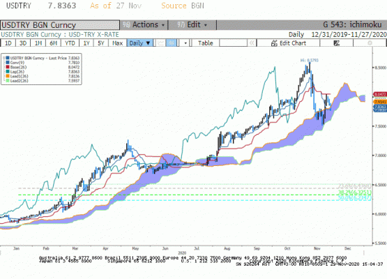 Teknik olarak 8 seviyesine yaklaşıldıkça satışların ön plana çıktığını gördüğümüz USD/TRY paritesinde ilk takip edeceğimiz seviye geri çekilmelerde 7,8235 seviyeleri ve sonrasında 7,8050 seviyeleri olacak. Yükselişlerin devamı halinde ise 7,8720 seviyesi ilk direncimiz olarak ön plana çıkmakta.