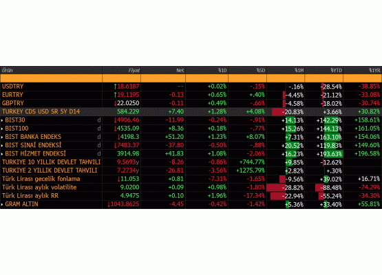 EUR/USD: Parite dünkü işlemleri 0,56% oranında yükseliş ile 1,0669 seviyesinden tamamladı. Gün içi işlem aralığı 1,0607-1,0691 oldu. Kapanışı 1,0665 direncinin üzerinde gerçekleşmesi ile teknik görünüm yeniden pozitife döndü. Dolar endeksindeki zayıf seyir paritenin yükselişine destek verdi. Paritede yukarı yönde yılın en düşük ve en yüksek noktalarından oluşan Fibonacci seviyelerinin 0,618 noktasında yer alan 1,0750 ilk hedef olarak takip edilebilir. Yükselişin devamında ise 1,0830 yukarı yönde önemli direnç olarak yer alıyor. Aşağı yönde 1,0618 desteği yükselişin devamına önem arz etmektedir. Bu bölgenin aşağı yönlü kırılması halinde 1,0525 desteğine kadar geri çekilme beklenebilir. Dün ABD'de açıklanan haftalık işsizlik başvuruları 225 bin kişi ile beklentilere paralel gerçekleşirken, yılın en düşük seviyelerinde kalmaya devam etti. Yılın son işlem günü Euro bölgesinde önemli bir veri akışı bulunmuyor, ABD'de Chicago PMI takip edilecek.